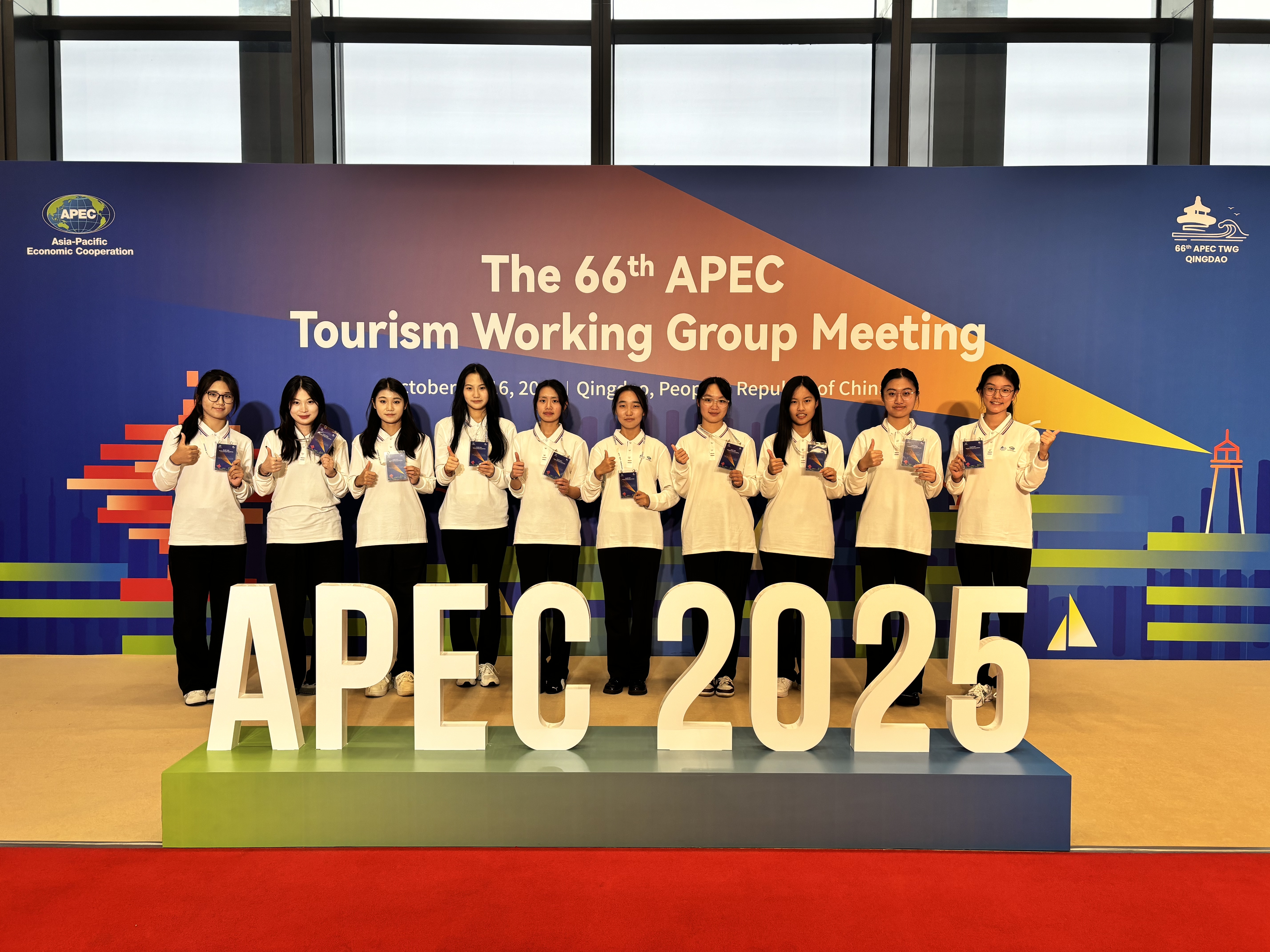 近日,亚太经合组织(APEC)第66次旅游工作组会议在青岛成功举办。beat365中文唯一官网“小语滴”志愿服务团选派优秀志愿者参与会议服务保障工作,以扎实的语言功底、专业的服务水平和饱满的青春热情,为这场国际盛会的顺利召开贡献了外院力量。