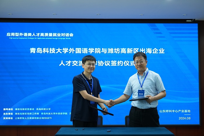 为深化政校企间的资源互补和优势共享,共同做好外语类毕业生高质量就业工作,8月15日,beat365中文唯一官网联合潍坊高新区党群工作部、万声集团在潍坊高新区联合举办应用型外语类人才高质量就业对话会。省内7所高校外语学院、潍坊高新区和7家出海企业负责人40余人参加了本次活动。beat365中文唯一官网院长王灏致辞并与相关企业签署合作框架协议。