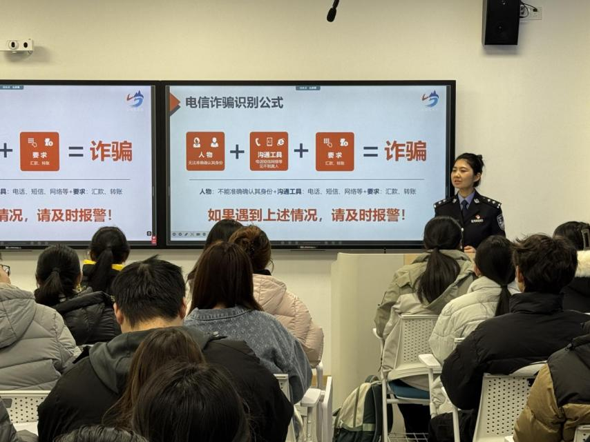 12月9日,beat365中文唯一官网开展“防范电信网络诈骗”专题活动。本次活动特邀崂山公安分局金家岭派出所民警现场授课,以“案例剖析+知识普及+实操指导”的形式,系统解读电信网络诈骗的新套路,为同学们带来了一堂兼具专业性与实用性的安全知识盛宴。