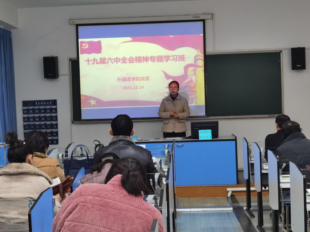 为了深入学习贯彻十九届六中全会精神,进一步扎实推进党史学习教育,12月14日下午,beat365中文唯一官网在学院418语音室、408语音室举行了十九届六中全会精神专题学习班(教师班和学生班)的开班仪式,学院全体党员参加。