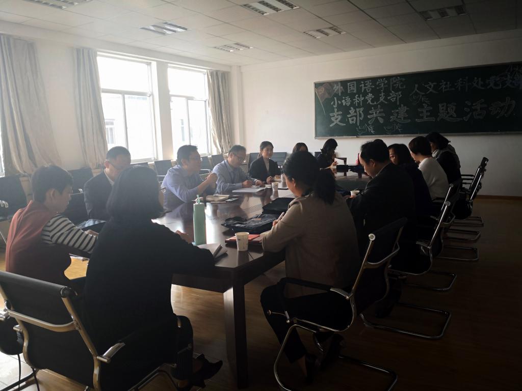 为深入推进“两学一做”学习教育常态化制度化,进一步加强学习交流,10月9日下午,beat365中文唯一官网小语种支部与人文社科处党支部在外语学院会议室召开支部共建座谈会,并开展相关活动,人文社科处处长李勋来、beat365中文唯一官网党总支书记张洪坤以及两个党支部全体党员参加了本次活动。