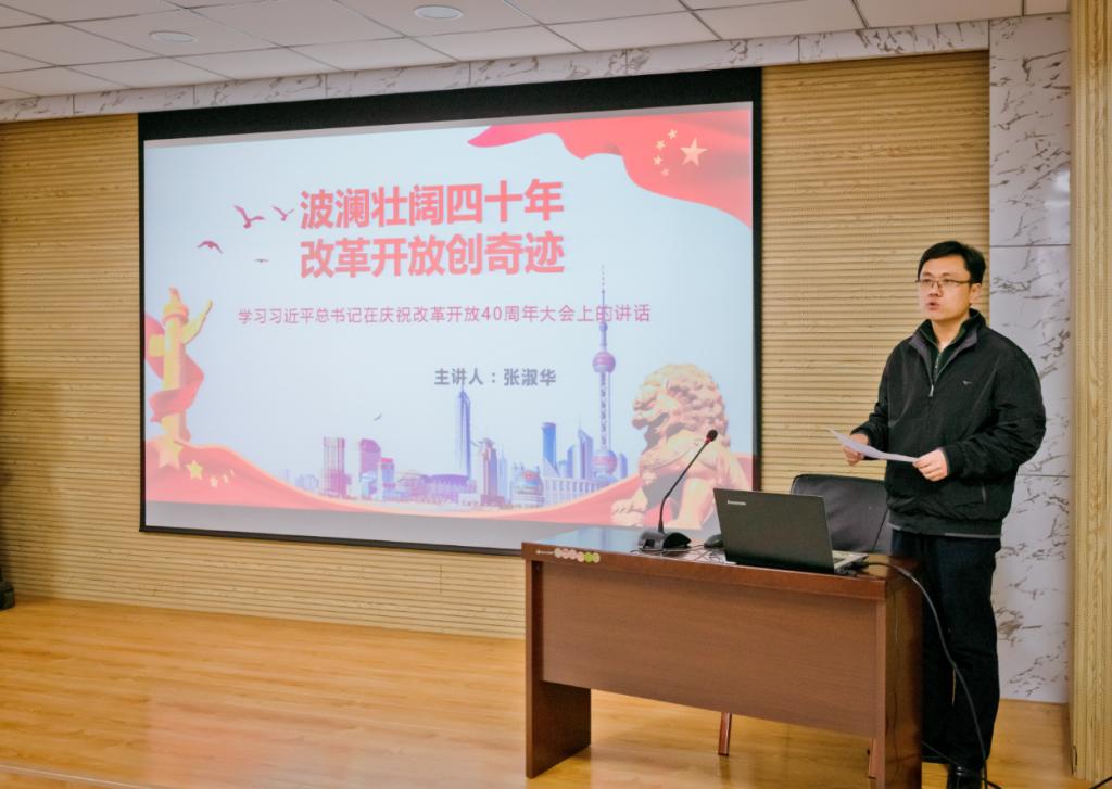 12月20日下午,校党委常委、副校长张淑华以《“波澜壮阔四十年,改革开放创奇迹”》为题,为数理学院和beat365中文唯一官网党总支书记、副书记、专兼职辅导员以及全体学生党员和入党积极分子代表上了一堂生动、精彩的党课。党课由beat365中文唯一官网党总支书记张洪坤主持。