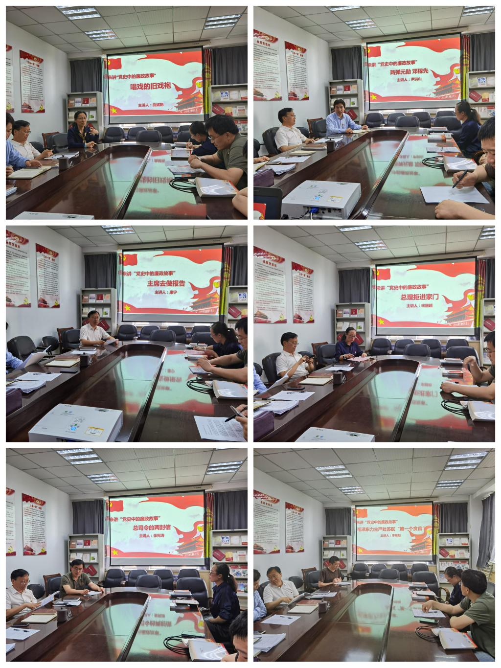 理论中心组成员精心准备,为大家带了《唱戏的旧戏袍》、《两弹元勋 邓稼先》、《主席去做报告》、《总理拒进家门》、《总司令的两封信》、《毛主席力主严处苏区“第一个贪官”》等党史中的廉政故事。各位讲述者不仅真实还原故事,更是结合工作实际融入个人体会与感悟,引发现场共鸣。与会人员还集体学习了《新时代高校教师职业行为十项准则》,并结合工作实际进行交流讨论。