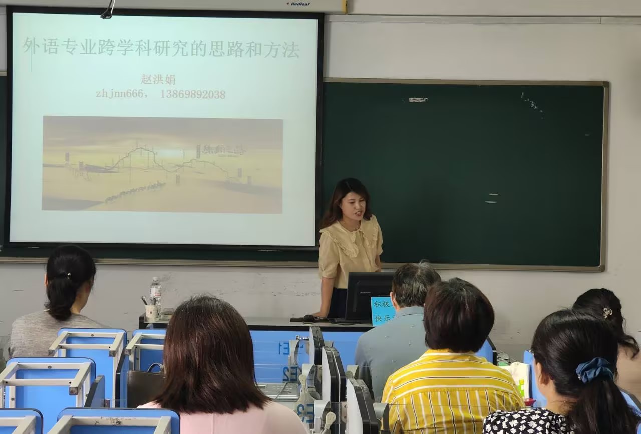 本次集体学习邀请beat365中文唯一官网泰山学者青年专家赵洪娟教授作了《外语专业跨学科研究的思路和方法》的报告。赵洪娟在报告中指出外语专业、外语教师在发展中面临的困境和挑战,新文科跨学科、综合性、融通性的特征,外语专业跨学科交叉融合的路径。她强调新形势下高校外语教师可以利用人工智能、大数据、区块链等技术,充分发挥自身外语优势,开展“外语+”跨学科研究,让外语学科在讲好中国故事、提高中国国际话语权、助力中国参与国际治理等方面发挥重要作用。在报告中,赵教授还介绍了个人“一带一路”相关学术研究经历,分享了自己的成长感悟,勉励与会教师“心有大格局,方能立天地”,要有高远的目标追求,要下苦功夫,用付出和汗水赢得成功。