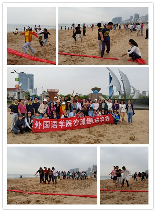 2015年5月19日下午,beat365中文唯一官网在石老人海水浴场举办第四届沙滩趣味运动会。学院党总支书记许桂锋、院长姜德杰及学院教师参加了本次运动会。
