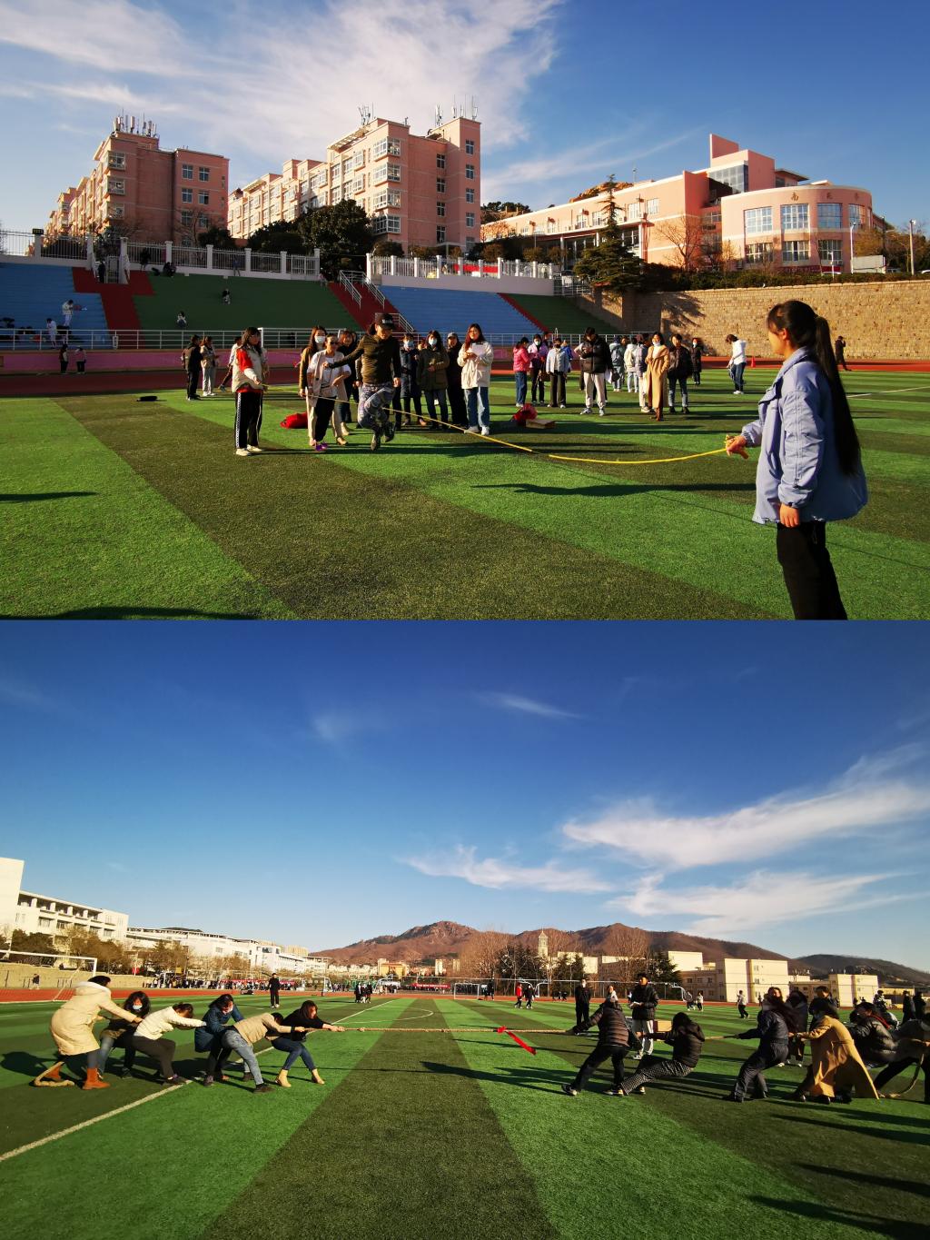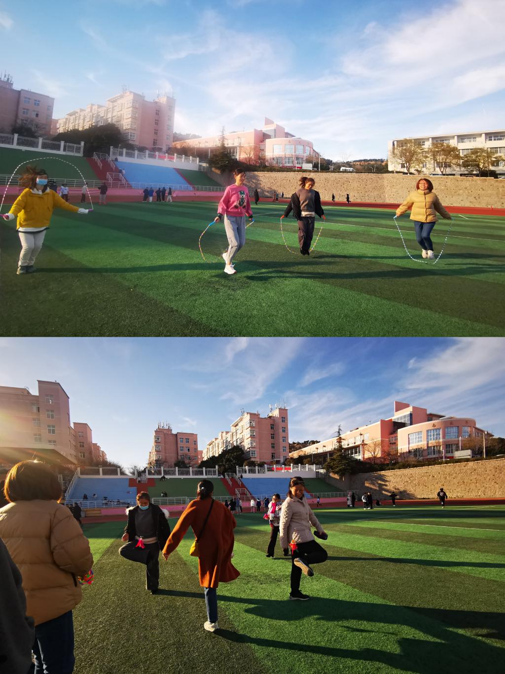 12月7日下午,“强身健体 立德树人——beat365中文唯一官网‘爱体育 兴科大’教师冬季三项比赛”于南苑操场成功举办。比赛分为三项,分别为单人一分钟踢毽子比赛、单人与集体一分钟跳绳比赛、八人制拔河比赛。