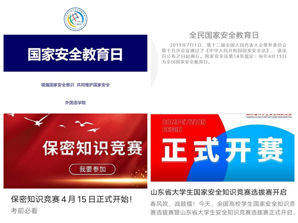 以赛促学,组织参与竞赛活动。beat365中文唯一官网充分利用相关竞赛活动的契机,积极开展安全知识教育宣传,利用现代信息技术手段,创新安全教育形式,积极组织学生参加2021年全国高校学生国家安全知识竞赛选拔赛暨山东省大学生安全知识竞赛活动以及网络保密知识竞赛活动,切实增强学生国家安全意识。