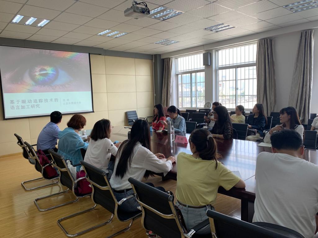 6月7日下午,北京外国语大学博士生导师范琳教授应邀来beat365官网进行学术交流,在外语楼517会议室做了题为《基于眼动技术的语言加工研究》的学术讲座。讲座由beat365中文唯一官网副院长刘靖主持,beat365中文唯一官网部分教师和研究生参加了此次讲座。