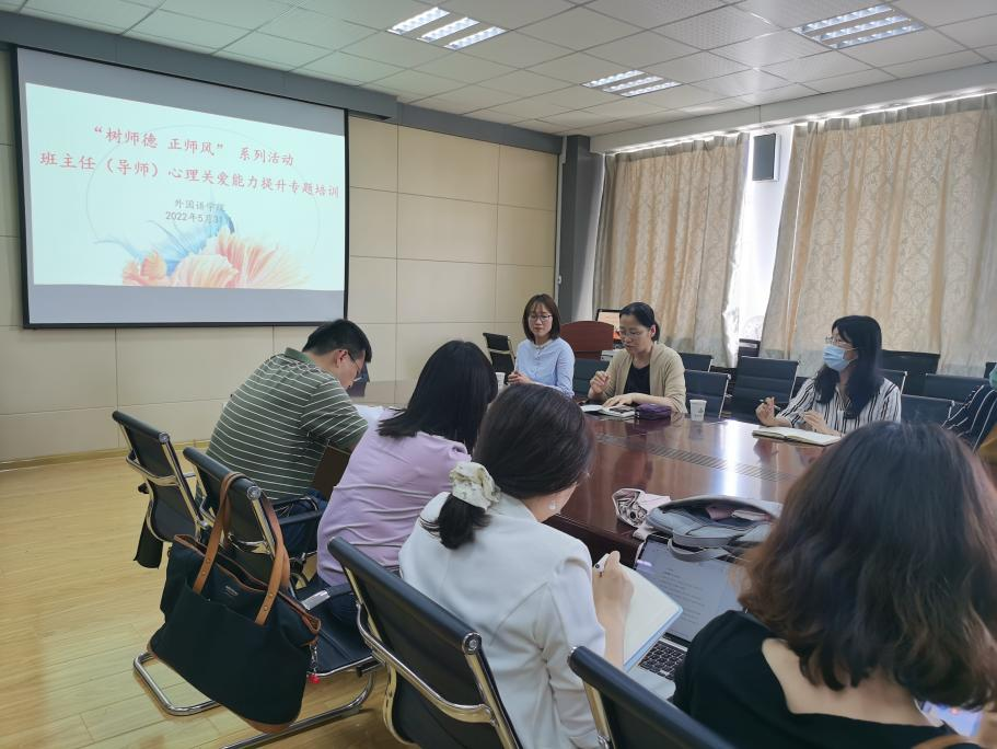 2022年5月31日下午,beat365中文唯一官网“树师德 正师风”系列活动——教师心理关爱能力提升专题培训在学院517会议室进行,学院邀请校心理健康教育与研究中心主任李海玲为学院全体系部主任、班主任(导师)进行相关培训。