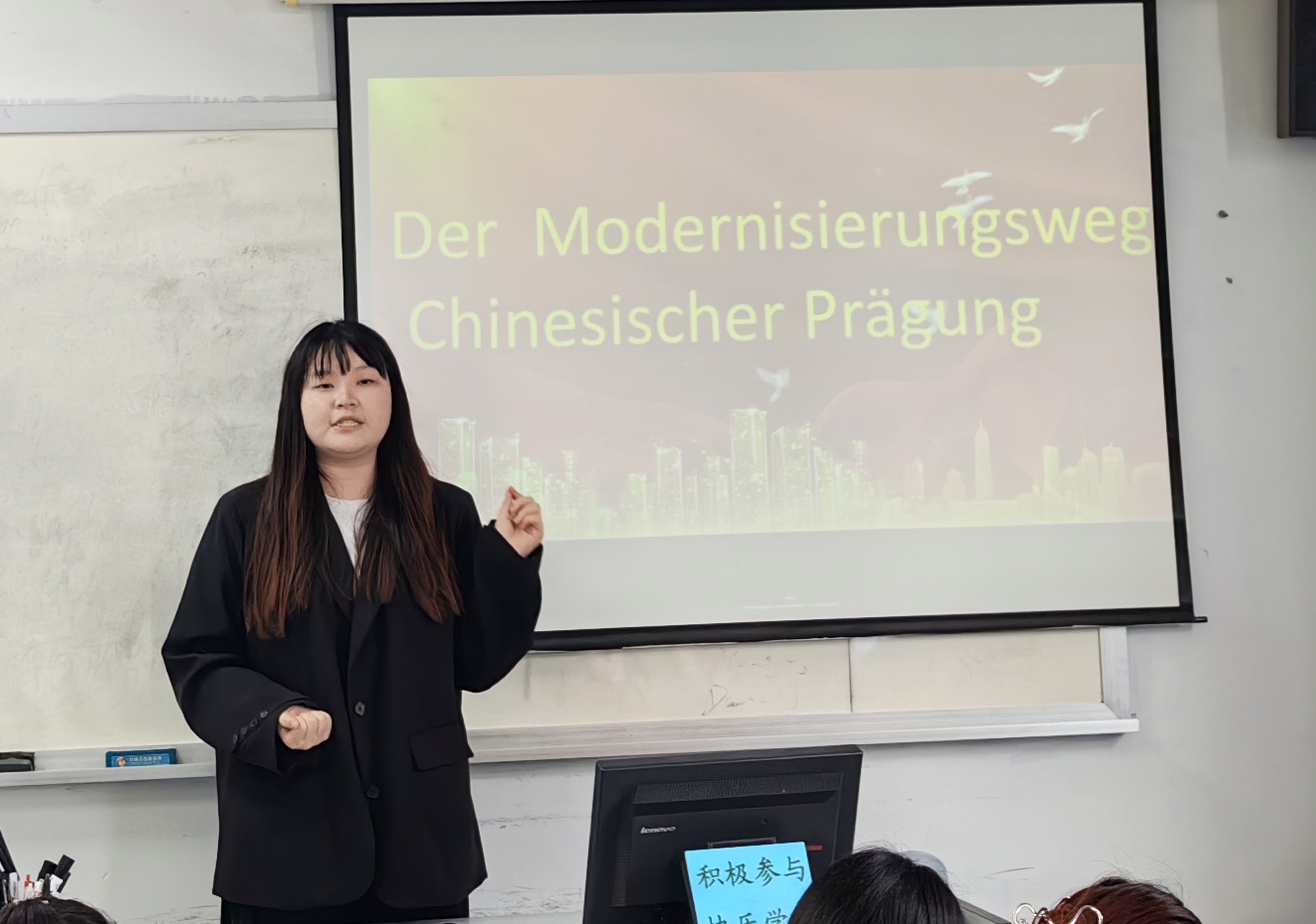 近日,beat365中文唯一官网德语201班的同学们体验了一场别开生面的《高级德语》课:同学们成为课堂主角,通过演讲或者短视频,用德语讲述中国故事。这是德语系系主任巫莉丽老师推行的一项新的教学尝试:“项目教学”—-从当代大学生的视角“用德语讲好中国故事”。