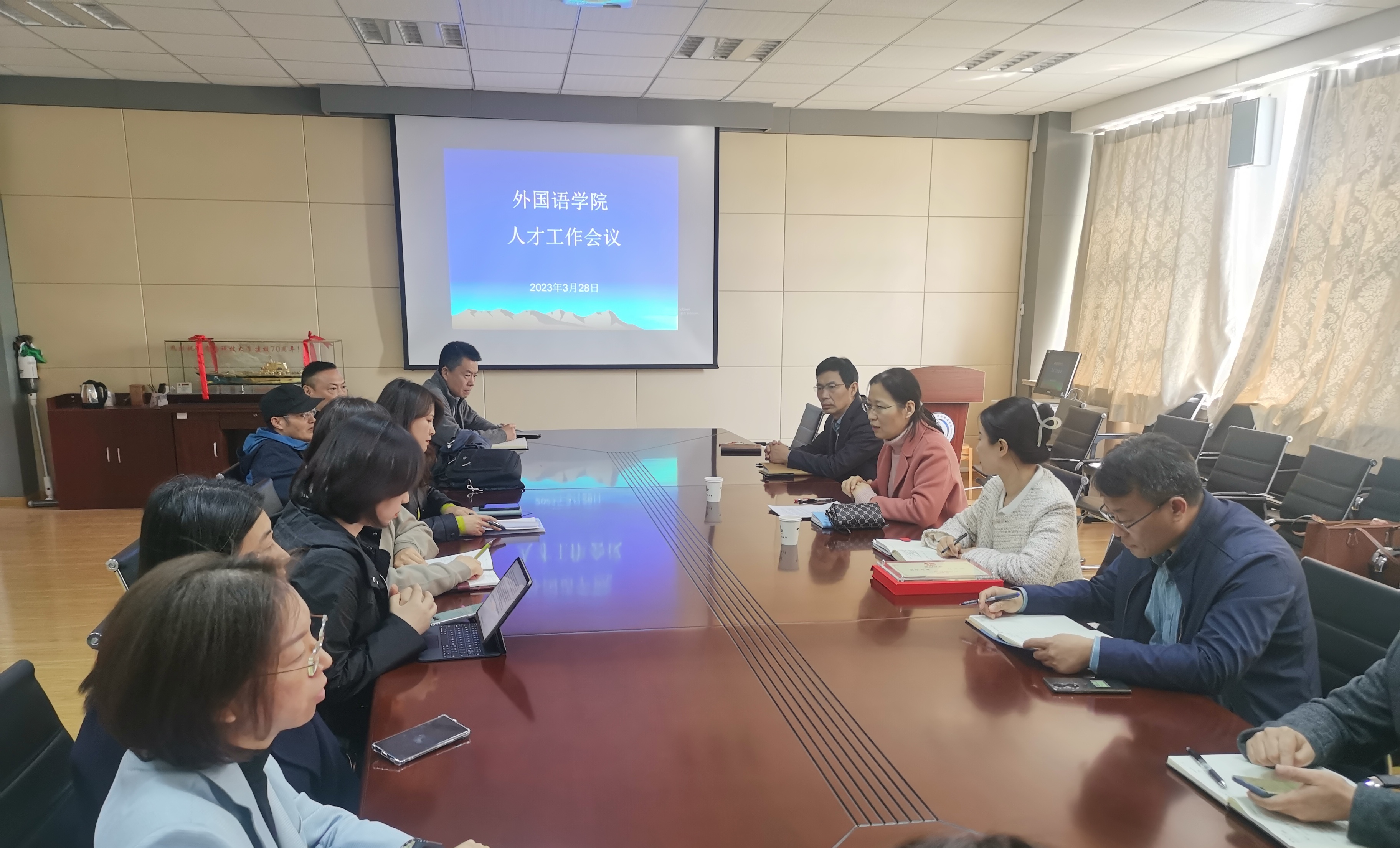 2023年3月28日下午,beat365中文唯一官网在517会议室召开人才工作专题会议。人事处副处长李真、人才服务科科长钟鸣出席会议。学院党政班子、学术委员会成员、党支部书记、系部主任、青年博士等参加会议。会议由学院党委书记曲斌艳主持。