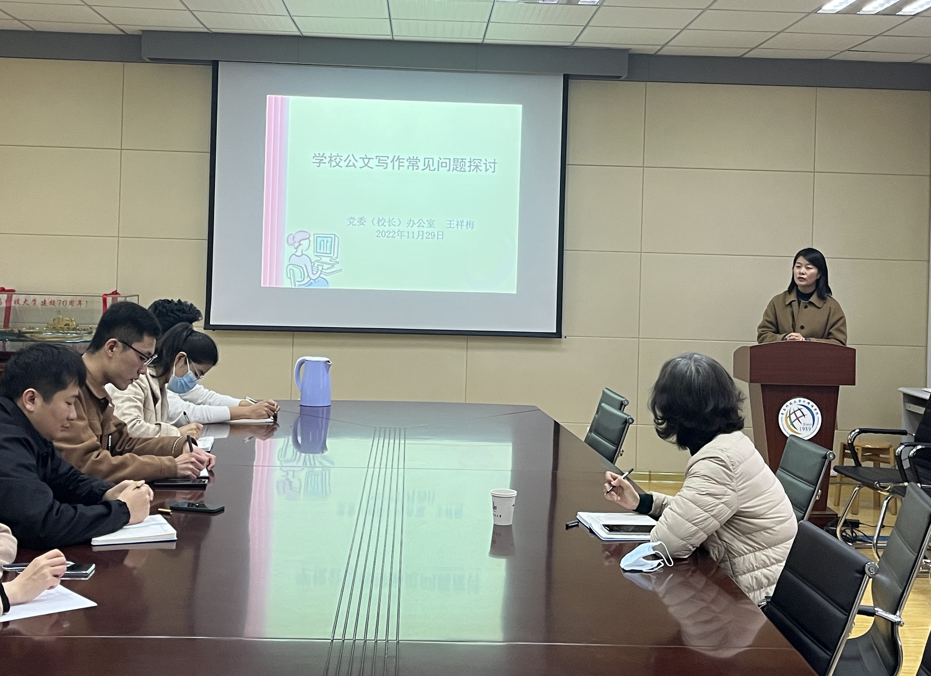 为落实立德树人根本任务,强化辅导员能力素质,11月29日下午,beat365中文唯一官网在517会议室开展辅导员行政管理能力提升培训。邀请学校党委(校长)办公室督查科科长王祥梅担任主讲人,围绕“学校公文写作常见问题”进行培训交流。培训由beat365中文唯一官网党委副书记王晓娜主持,全体专、兼职辅导员及学生骨干参加。