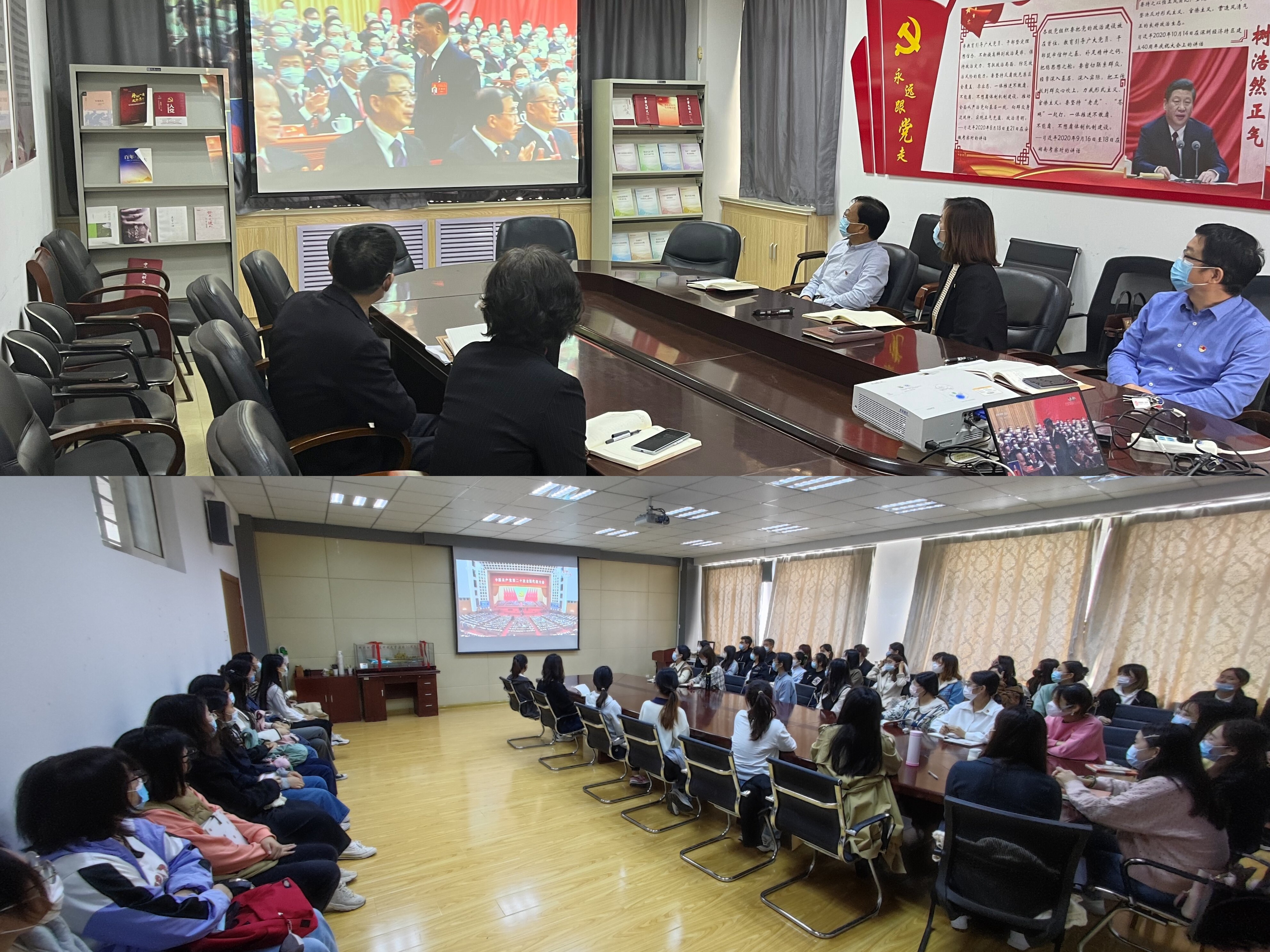 10月16日上午,beat365中文唯一官网党委组织全院师生收听收看党的二十大盛况直播。学院党委理论学习中心组成员在学院楼502会议室集中收看,beat365中文唯一官网研究生党支部、学生党支部党员在外院楼517会议室集中收看,2022年秋季入党积极分子和发展对象在弘毅楼B区102教室集中收看,各党支部、团支部组织本支部党员、团员通过多种形式收听收看。学院广大师生认真聆听、学习习近平总书记代表十九届中央委员会所作的报告,备受鼓舞,大家纷纷表示要持续深入学习领会报告精神,以实际行动贯彻报告精神,为全面建设社会主义现代化国家、全面推进中华民族伟大复兴贡献力量。
