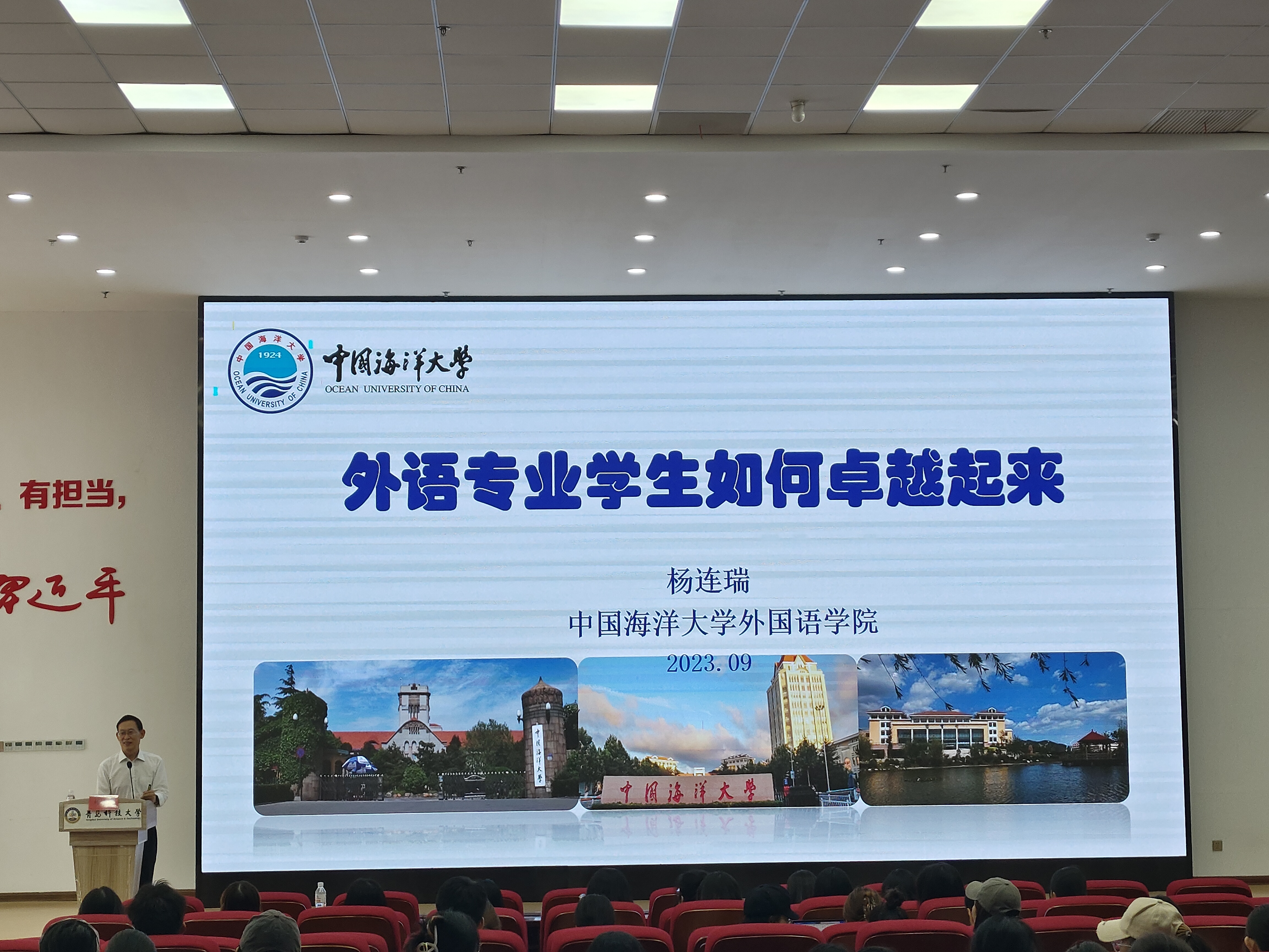 9月26日,由beat365中文唯一官网主办的“心语”论坛之“新时代外语专业学生如何卓越起来”专题报告会在崂山校区北区团学报告厅成功举办。报告会邀请中国海洋大学二级教授、beat365中文唯一官网名誉院长杨连瑞担任主讲人。