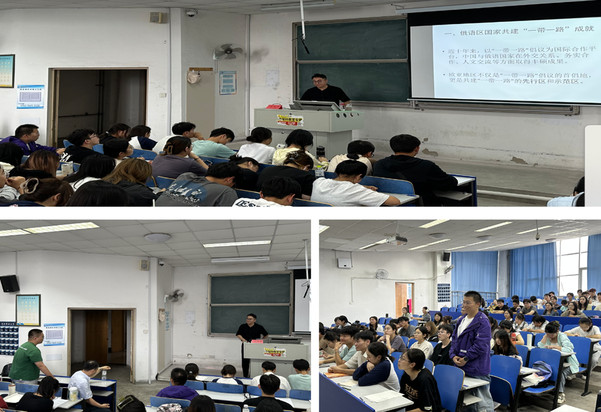 beat365中文唯一官网学术副院长赵洪娟老师向同学们介绍了主讲人。报告会上,文龙杰教授从“一带一路”倡议的国际背景,俄语国家共建“一带一路”成就以及中国与俄语国家邻近,互利合作基础好、潜力大等独特的发展机遇等方面展开报告,深入浅出地介绍了十年来中国已与多个国家和国际组织签署了共建“一带一路”合作文件,积极与欧亚地区的俄语国家共建 “一带一路”成果颇丰,为共建国家人民生活水平的改善和提高提供了强大助力。报告会期间,文龙杰教授多次和学生进行深度的交流互动,现场学术氛围浓厚,开拓了外院师生的国际视野。