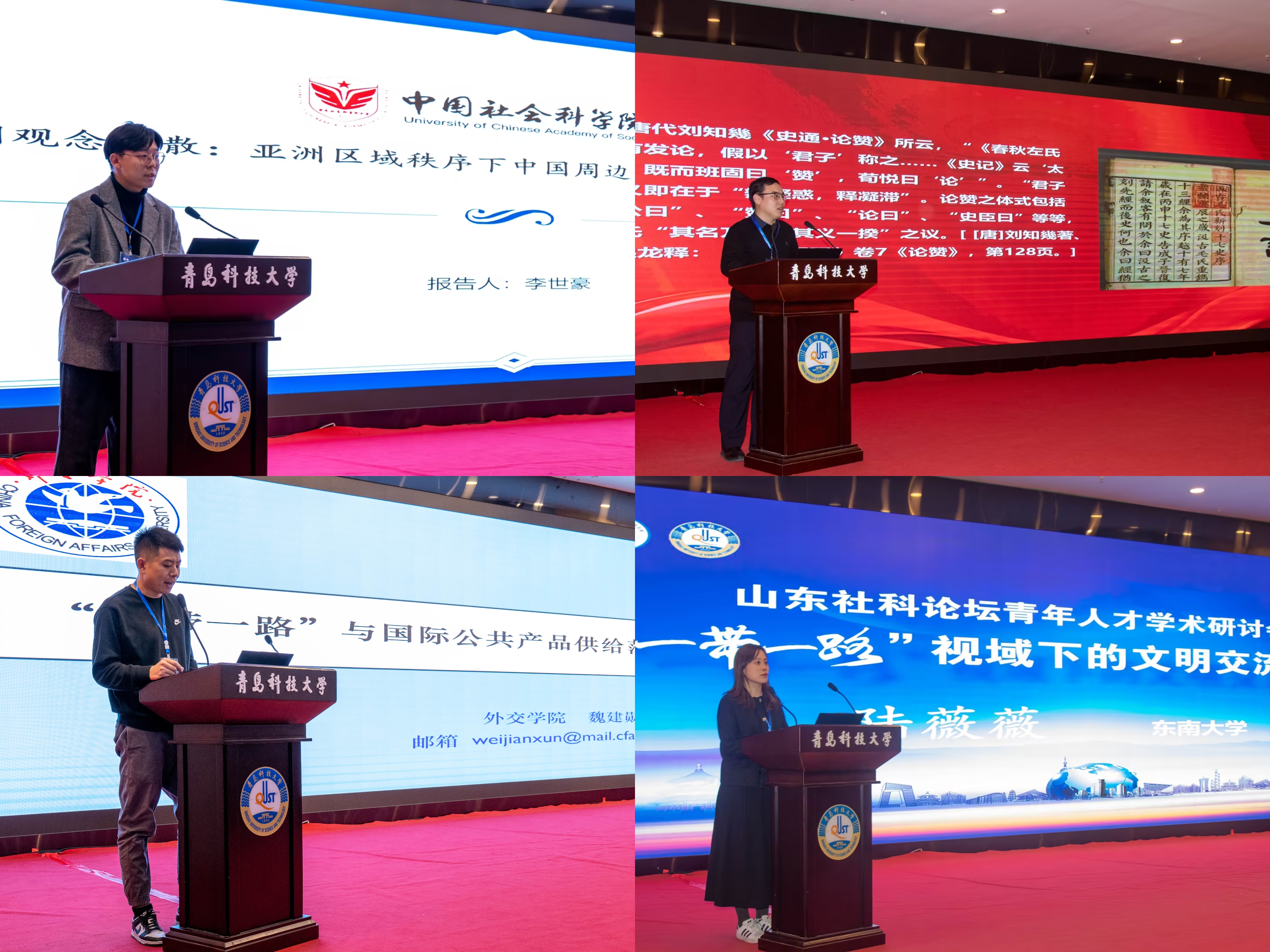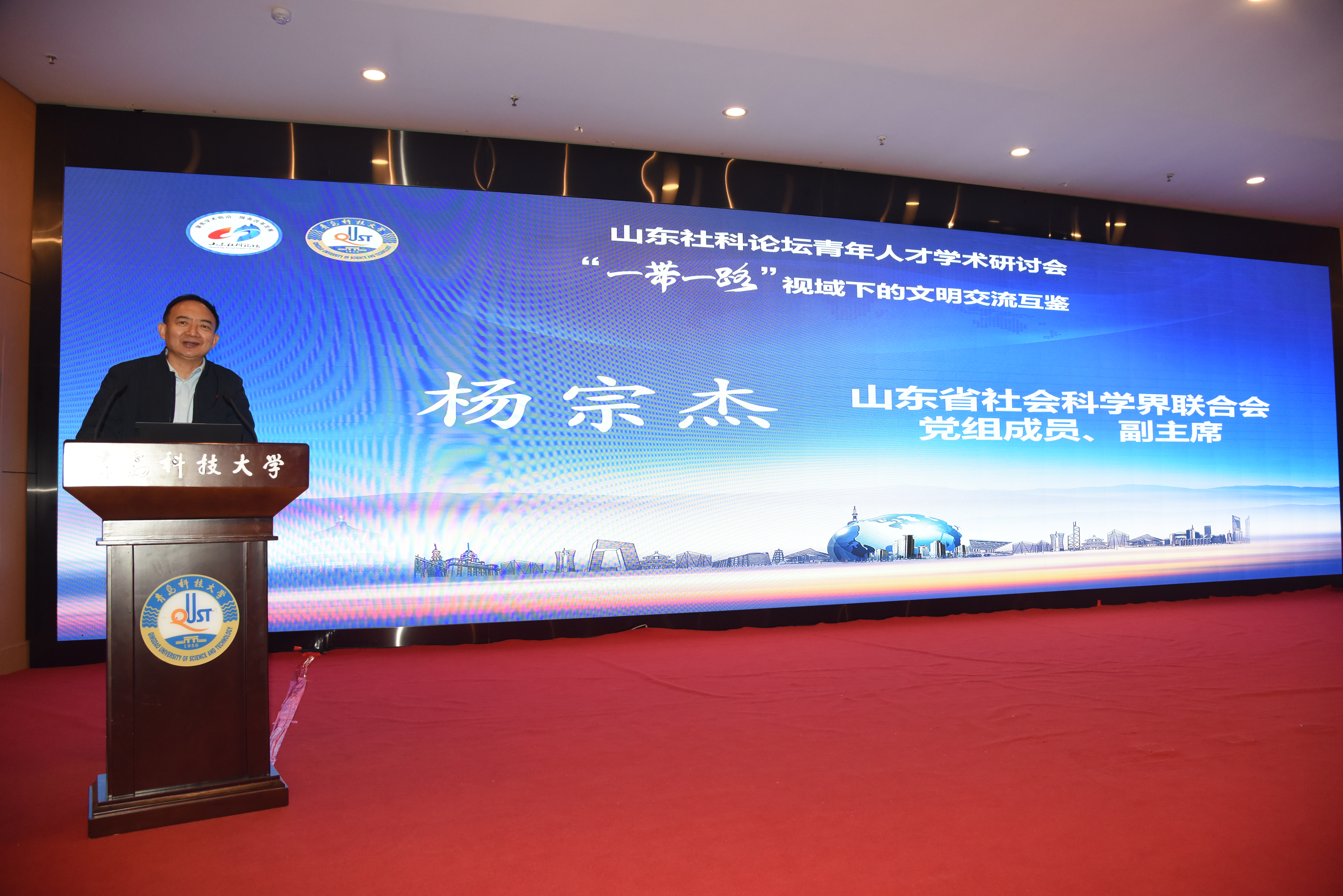 11月24日,山东社科论坛青年人才学术研讨会——“一带一路”视域下的文明交流互鉴在beat365中文唯一官网召开。山东省社科联党组成员、副主席杨宗杰,青岛市社科联党组书记、副主席郑海涛,《山东社会科学》杂志社社长、主编刘要停,学校党委书记李兴伟、党委副书记沈文青等出席开幕式。