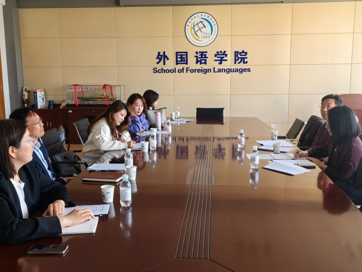4月26日上午,青岛市外办翻译处副处长李嵩一行二人来beat365官网调研。调研内容主要针对青岛市政协委员、beat365中文唯一官网副院长赵洪娟教授在青岛市政协十四届三次会议的提案内容展开,提案指出要进一步加强在青高校英语及部分非通用语种建设,进一步提升青岛国际传播能力。beat365中文唯一官网副院长康宁、赵洪娟,英语系主任王丽,日语系主任班健,德语系主任于豪参加了此次调研会。
