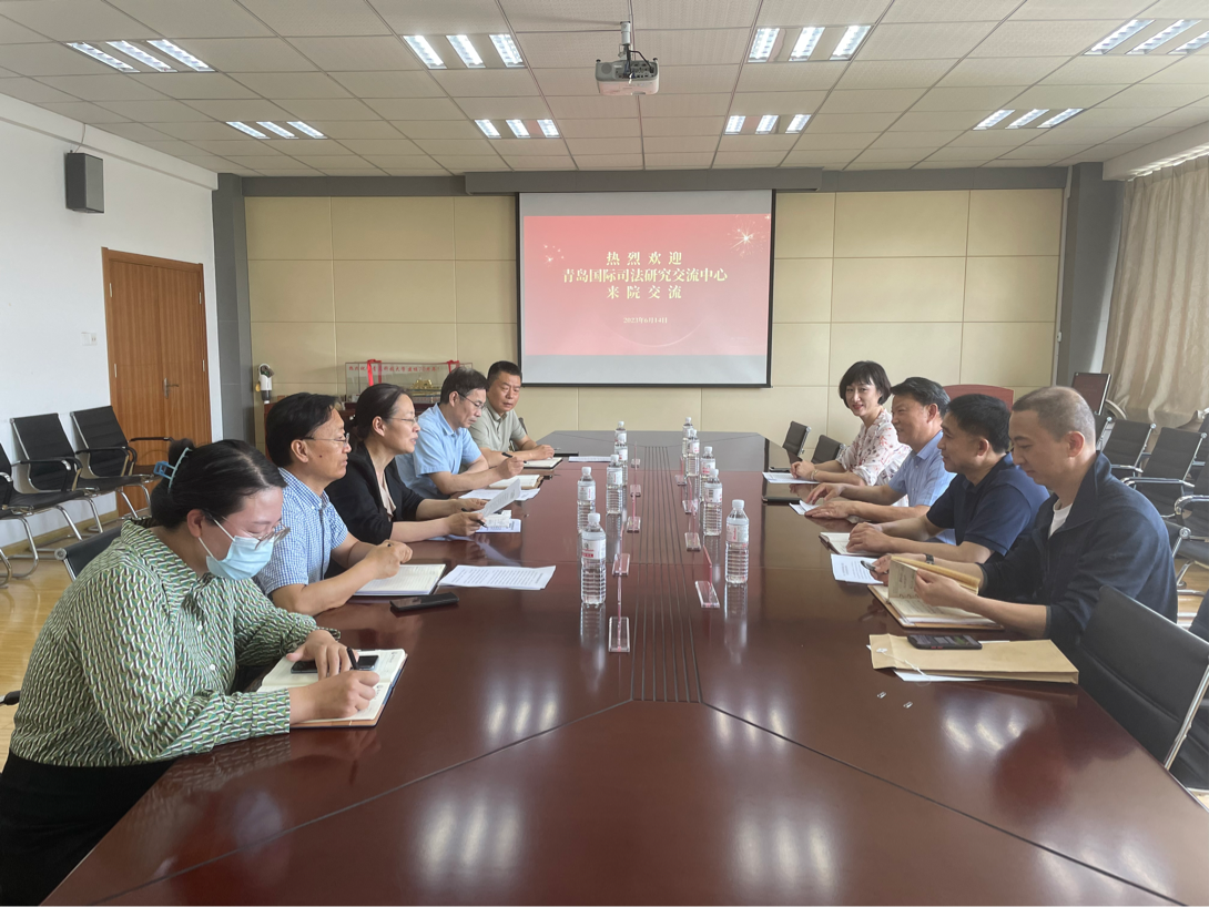 6月14日下午,青岛国际司法研究交流中心负责人刘国栋、青岛中院干部张俊、孙俊、张文博一行来学院交流访问。学院党委书记曲斌艳、院长尹洪山、副院长康宁、副书记兼副院长刘尧、学工办主任刘妍君参加交流。学院党委书记曲斌艳主持交流座谈会。