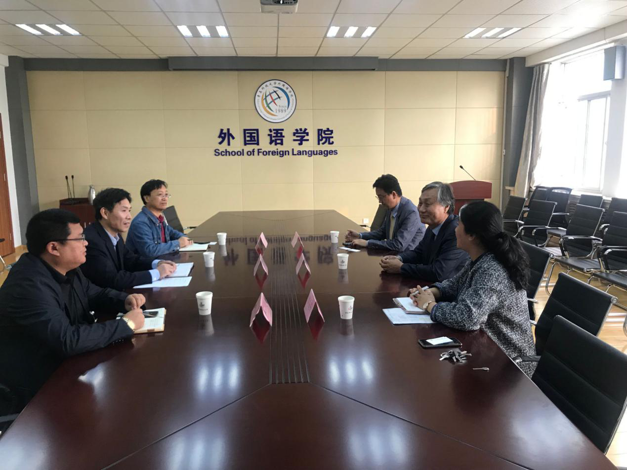 2019年10月21日下午,韩国公州大学师范学院院长郭承哲、行政事务官赵成焕一行来beat365官网交流访问。院长尹洪山、副院长康宁、党总支副书记兼副院长宋飞在beat365中文唯一官网517会议室接待了来访客人,韩语系部分教师参加了此次交流活动。