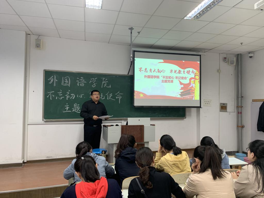 10月22日,beat365中文唯一官网于明德楼441教室召开“不忘初心、牢记使命”主题党课活动,beat365中文唯一官网党总支副书记宋飞给beat365中文唯一官网全体学生党员上了非常有意义的一堂党课。