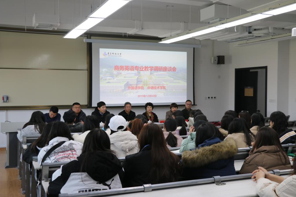 三、师生座谈,解决学生实际问题。beat365中文唯一官网领导班子与中德校区四个班的同学进行了座谈,并就外语专业的前景、学习方向、就业方向进行了介绍和指导,旨在解决学生学习生活中的问题,破解职业生涯规划难题。