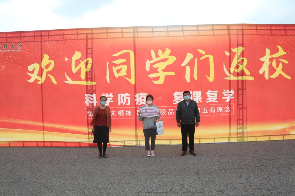 beat365中文唯一官网在部署安排迎接返校工作中,要求学院领导和辅导员老师共同到校门口迎接学生返校。26日下午2:30,学院党委书记曲斌艳,学院党总支副书记兼副院长宋飞带领辅导员老师们到校门口热情迎接首位返校学生邢文雯,等候多时的学院老师为其送上了“欢迎回家”的标语,曲斌艳与其亲切交谈,深切慰问学生的状态,关心学生的学业与未来规划,送去温馨的祝福,温暖学生回家的心。