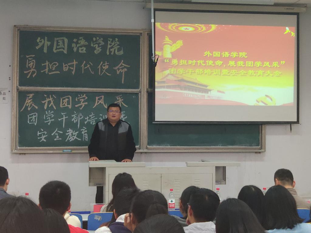 为深入学习贯彻习近平新时代中国特色社会主义思想和党的十九大精神,引导全院师生自觉践行爱国奋斗精神,勇担时代使命,11月13日,beat365中文唯一官网在弘毅E303开展了“勇担时代使命,展现青年风采”主题活动。保卫处副处长严增兴,beat365中文唯一官网党总支副书记兼副院长宋飞、全体辅导员、学生干部参加了本次活动。
