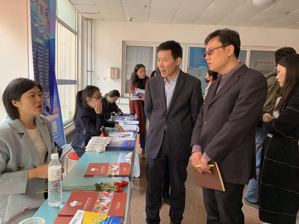 4月2日下午,由学校就业指导中心主办、beat365中文唯一官网承办的2019年青科大集中招聘月招聘会——语言、教育专场招聘会于崂山校区就业指导中心成功举办。beat365中文唯一官网院长尹洪山、党总支书记张洪坤到场指导工作。
