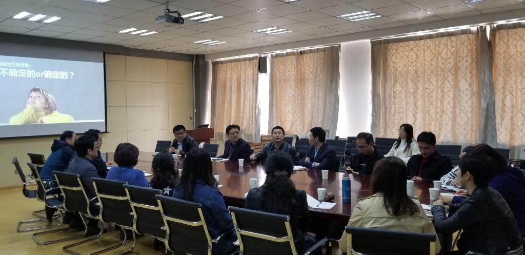 为了深入学习学校第七届教职工代表大会暨第十一次工会会员代表大会精神,贯彻落实学校教育思想大讨论动员部署大会要求,4月2日下午,beat365中文唯一官网在学院楼517召开教育思想大讨论专题研讨会,并邀请创新创业教育学院常务副院长褚庆柱做了题为《创业思维之——效果推理理论》,beat365中文唯一官网党政领导、各教研室主任以及全体辅导员参加了本次会议。会议由党总支书记张洪坤主持。