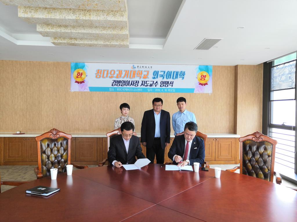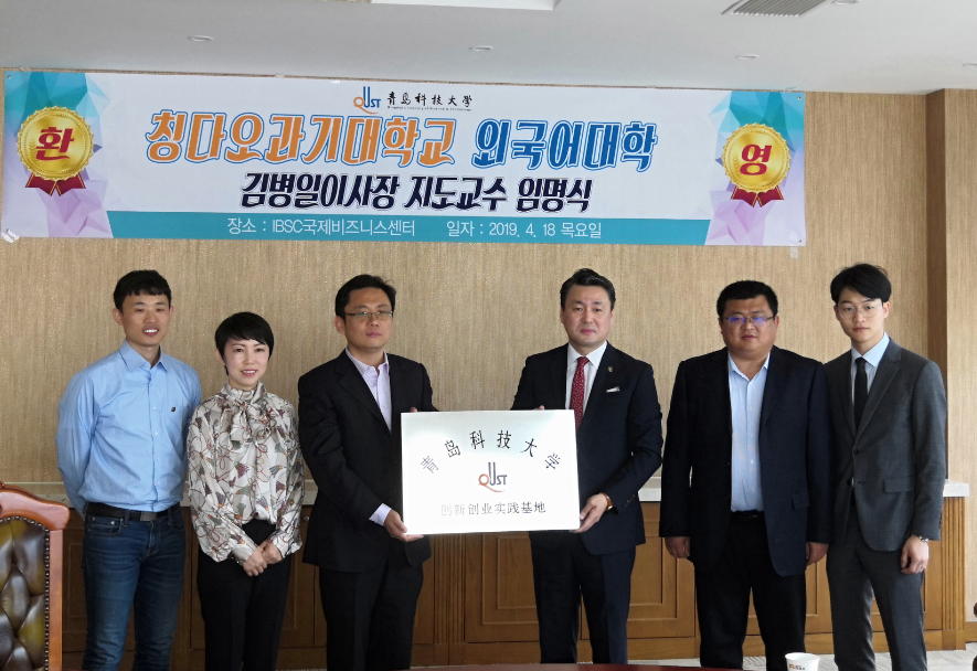 为贯彻落实学校教育思想大讨论动员部署大会相关要求,不断推进创新创业工作,4月18日,beat365中文唯一官网与国际商务服务中心共建“创新创业实践基地”签约及揭牌仪式在国际商务服务中心举行。国际商务服务中心理事长、青岛外商投资企业协会韩国投资企业分会城阳区即墨市支会会长金炳一,beat365中文唯一官网党总支书记张洪坤、党总支副书记宋飞及相关项目负责人参加了仪式。