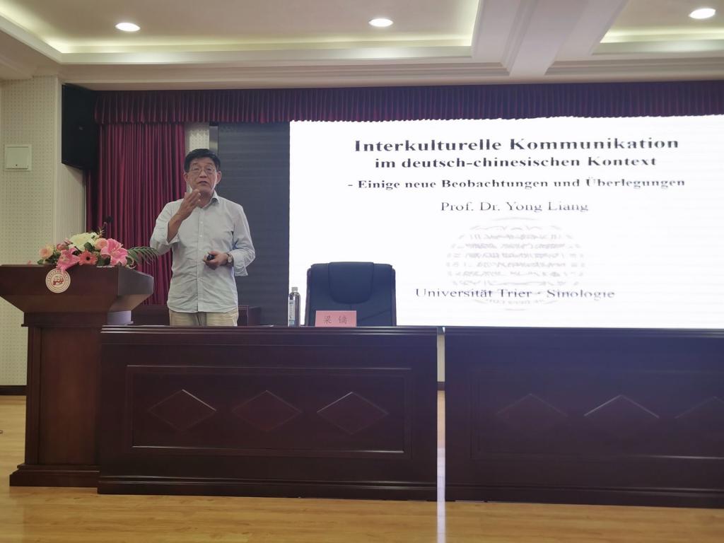 9月20日下午德国特里尔大学梁镛教授在外语楼学术报告厅为外院师生做了题为《中德背景下的跨文化交流——新观察与思考》的学术报告。报告由吕院长主持,德语系全体师生、外院其它语系以及中德、双元学院的部分老师和学生聆听了此次报告。