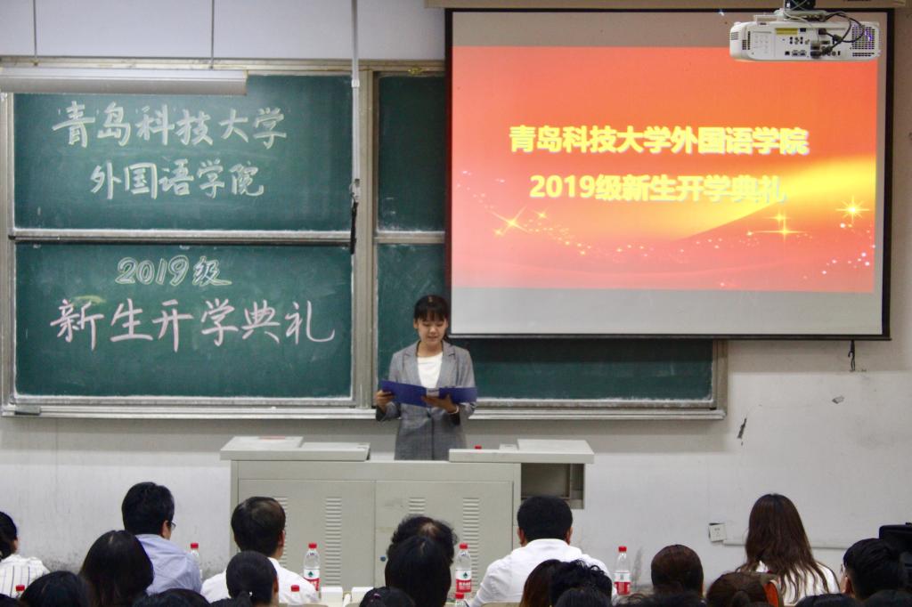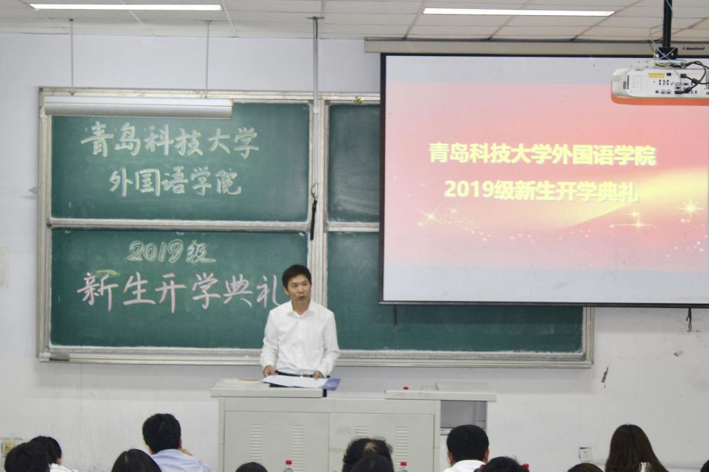 在举国上下喜迎新中国成立70周年之际,9月25日,beat365中文唯一官网2019级新生开学典礼于在弘毅楼E102隆重举行。beat365中文唯一官网院长尹洪山,副院长任素贞、吕耀中,党总支副书记兼副院长宋飞,英语系主任杨晓梅,日语系主任王宁,俄语系主任曹静娴,韩语系老师毕信燕,德语系主任崔婕以及分团委副书记辛婷婷出席了本次开学典礼。开学典礼由分团委老师王雨昕主持。