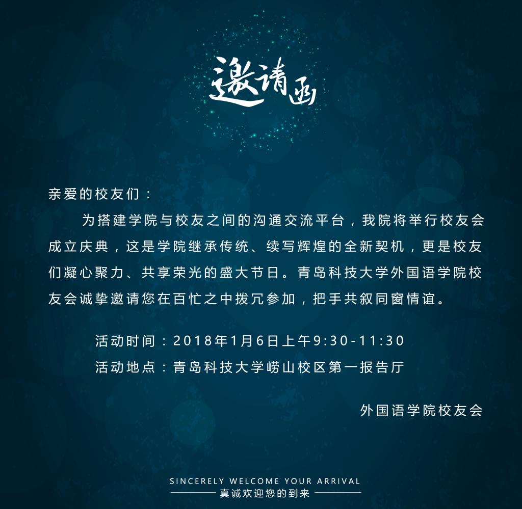 亲爱的校友,无论你仍在求索,或是事业辉煌,无论你多么闲暇,还是何等繁忙,我们相信您也在期待相聚的时光。母校在此向海内外校友们发出诚挚邀请,让我们把盏言欢,聊聊当年的故事,共谋未来的发展;让我们举杯共庆,愿校友事业成功,祝学院再创辉煌。