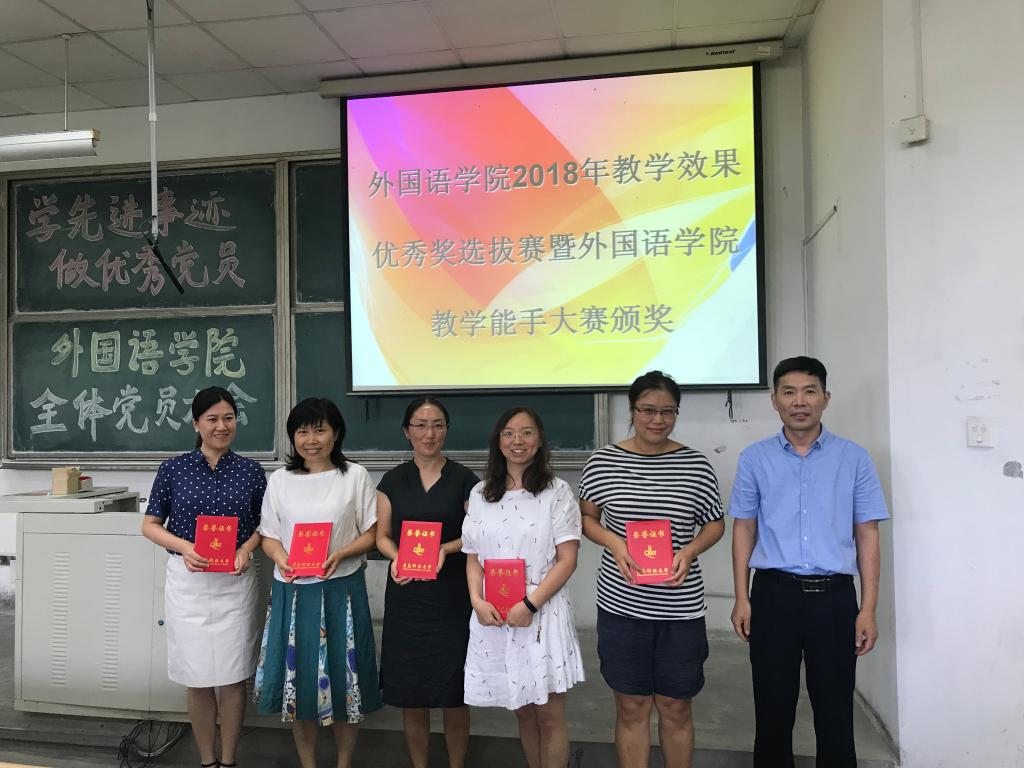 据悉,beat365中文唯一官网教师积极参加各类教学大赛并取得骄人成绩。刘艳艳老师荣获2018年外研社“教学之星”大赛天津分赛区季军;杨晓梅老师荣获2018年外研社“教学之星”大赛复赛一等奖;段晓茜老师荣获第九届“外教社杯”全国高校外语教学大赛(英语类专业组)山东赛区三等奖;孙福珊老师荣获2018年beat365中文唯一官网教学大赛三等奖;刘昱君老师荣获2018年beat365中文唯一官网移动教学大赛三等奖。