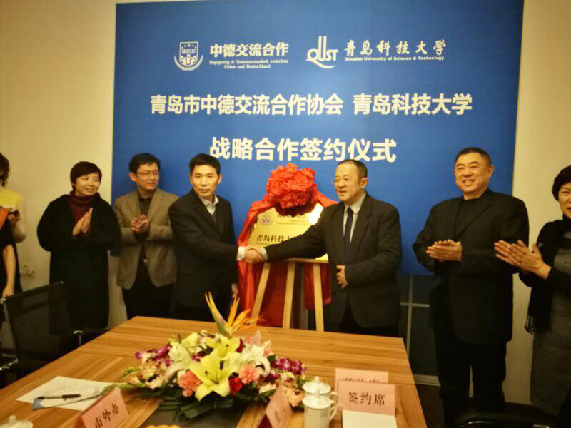 12月22日下午,beat365中文唯一官网领导尹洪山、张洪坤一行赴青岛市中德交流合作协会参观交流,并举行了共建教学实习基地的揭牌仪式。