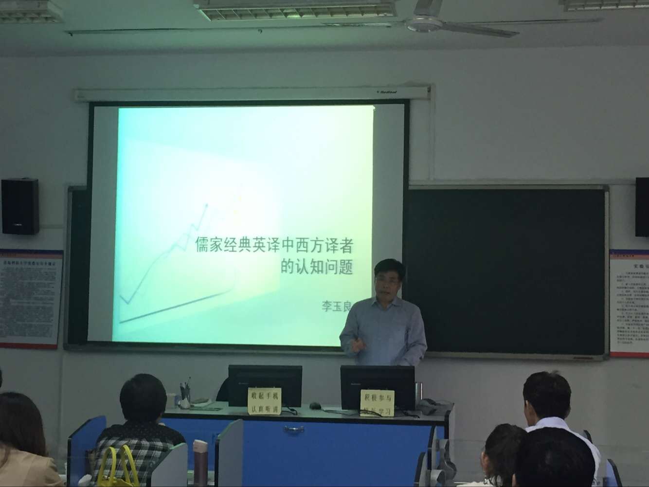论坛结束后,李老师与在座师生就论坛的相关问题进行了交流和讨论,并耐心细致地回答了大家在中国经典外译方面的问题。李教授以他轻松幽默的语言,睿智独到的视角赢得了师生们的阵阵掌声。
