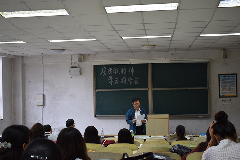 6.6日下午,beat365中文唯一官网在弘毅楼B102召开“廖俊波精神学习报告会”。学院党政领导、全体教职工参加了本次会议。会上,党总支书记姜德杰传达了中共中央组织部印发的《关于认真学习贯彻习近平总书记重要指示精神广泛开展向廖俊波同志学习的通知》文件精神,介绍了廖俊波的先进事迹。他指出,廖俊波同志始终牢记党的嘱托,对待工作兢兢业业、任劳任怨、恪尽职守,用模范行动和人格力量彰显了共产党人的先进性和纯洁性。希望全体老师能够以廖俊波同志为榜样,坚定理想信念,提高觉悟,敢于担当、苦干实干、无私奉献,以实际行动为五有大学的建设贡献自己的力量,做最美外院人。
