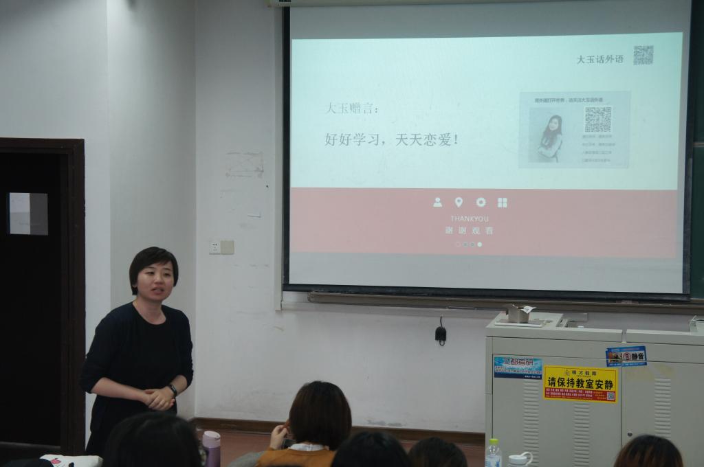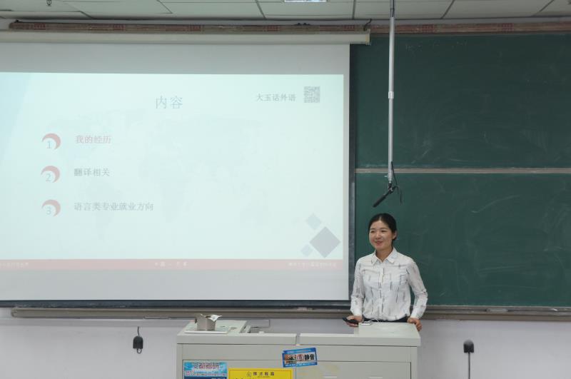 最后,高玉对语言类专业的就业方向进行了全面的介绍,分别从政府事业单位、商企类、自由职业等途径梳理了资格要求、准备工作及利弊,让同学们对自己未来职业生涯有了更清晰的规划和努力的方向,点燃了同学们对自己所学专业的热情和对未来的信心。