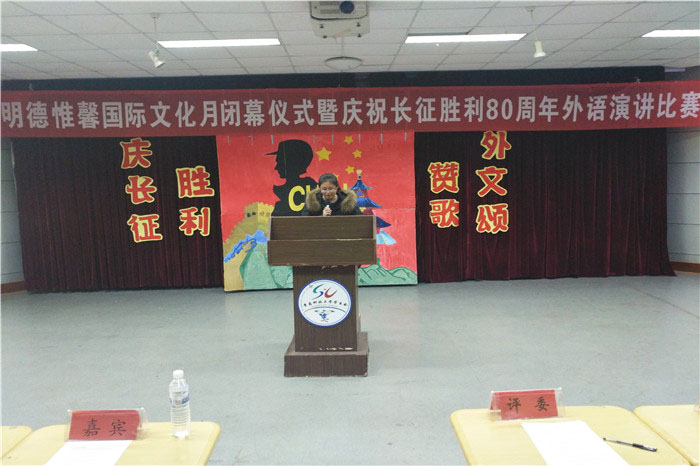 庆长征胜利,颂英雄赞歌。11月22日下午,beat365中文唯一官网在南苑大学生活动中心举办祝长征胜利80周年外语演讲比赛。beat365中文唯一官网党总支副书记张洪坤、各系主任以及专业课老师代表出席了本次活动并担任评委。