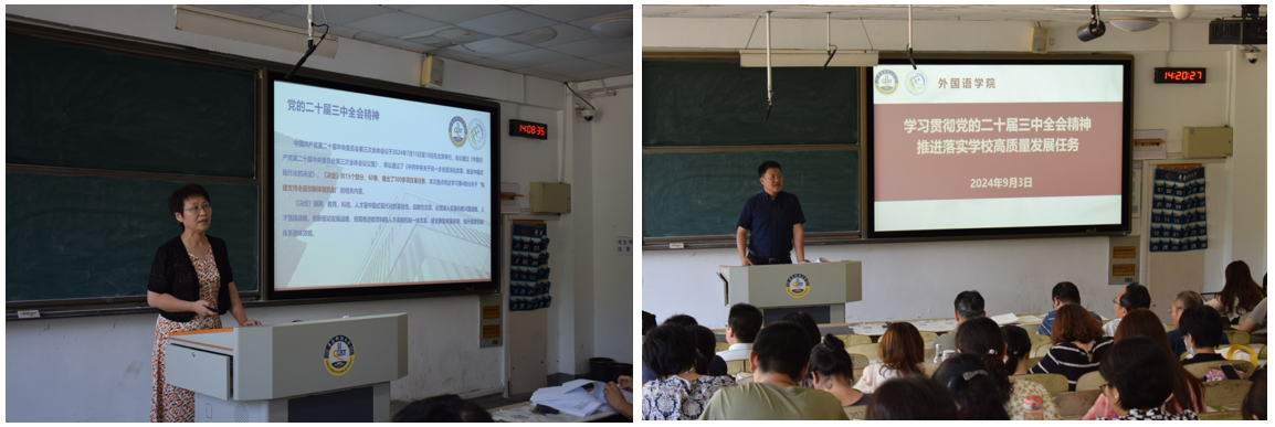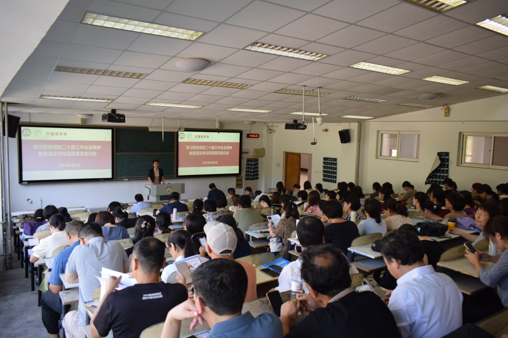 9月3日下午,beat365中文唯一官网召开全体教职工大会,学习贯彻党的二十届三中全会精神,安排部署新学习重点工作。学院党委书记曲斌艳主持,全体教职工参加。