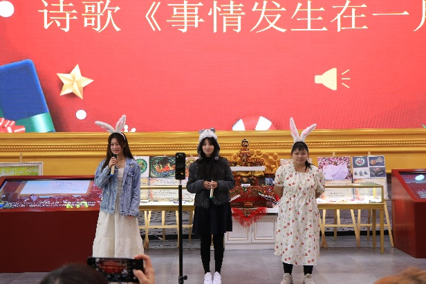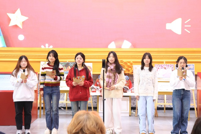 俄语系学生为新年庆典带来了《обними меня》(拥抱我)、《Вечера》(夜晚)、《Весна》(春天)等俄罗斯歌曲,《Дело было в январе》(事情发生在一月)、《Не ветер бушует надбором》(不是风在吹拂橡树)《А давай по Новогоднему закону》(让我们遵循新年的法则)等俄语诗歌朗诵。