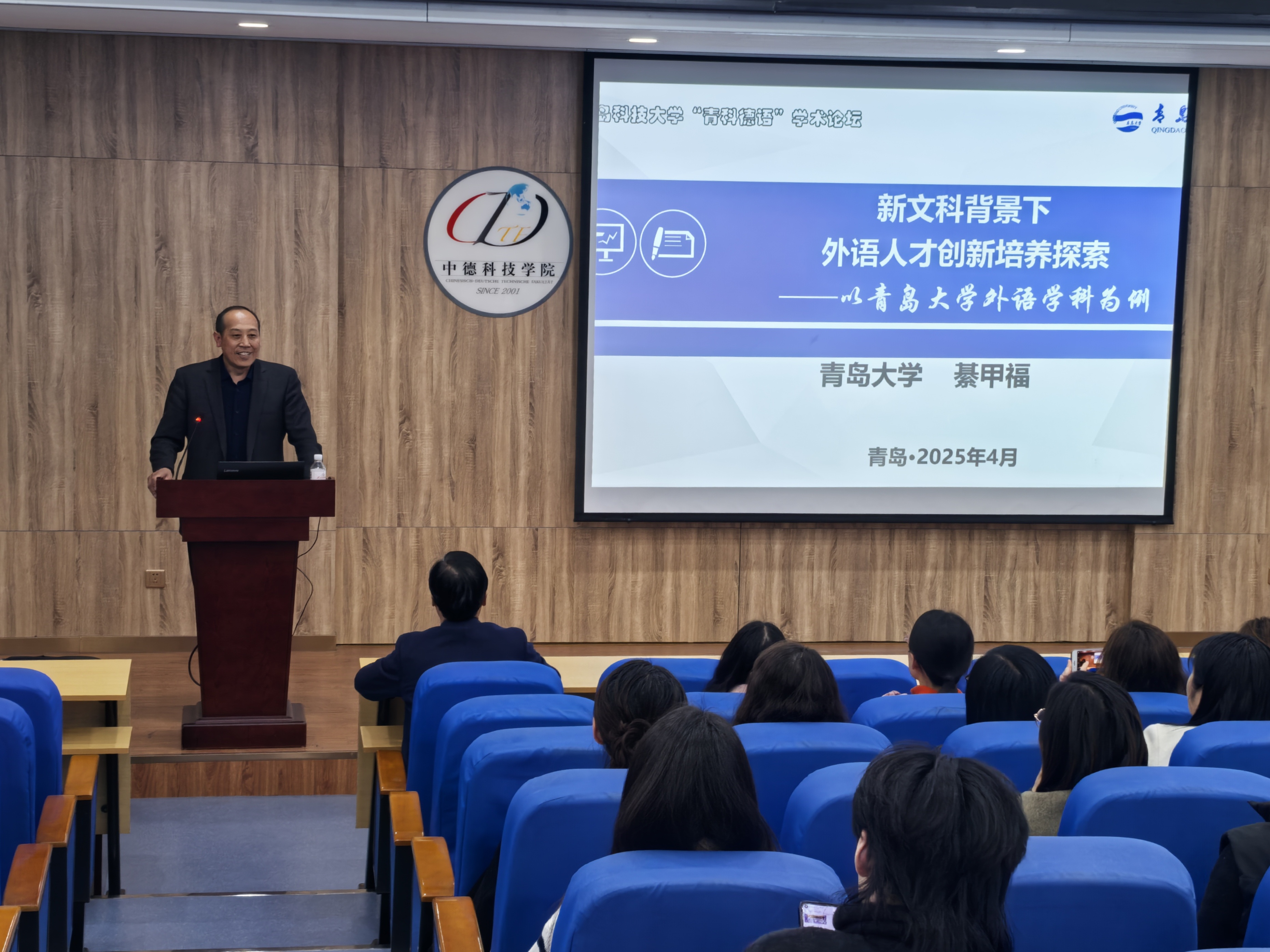 4月1日下午,由beat365中文唯一官网、中德科技学院、中德工程学院联合主办的“青科德语”学术论坛第二讲在崂山校区举办。教育部外语教学指导委员会德语分委员会委员、青岛大学外语学院德语系主任綦甲福教授应邀作《新文科背景下外语人才创新培养探索》主题报告。报告由beat365中文唯一官网副院长康宁教授主持。