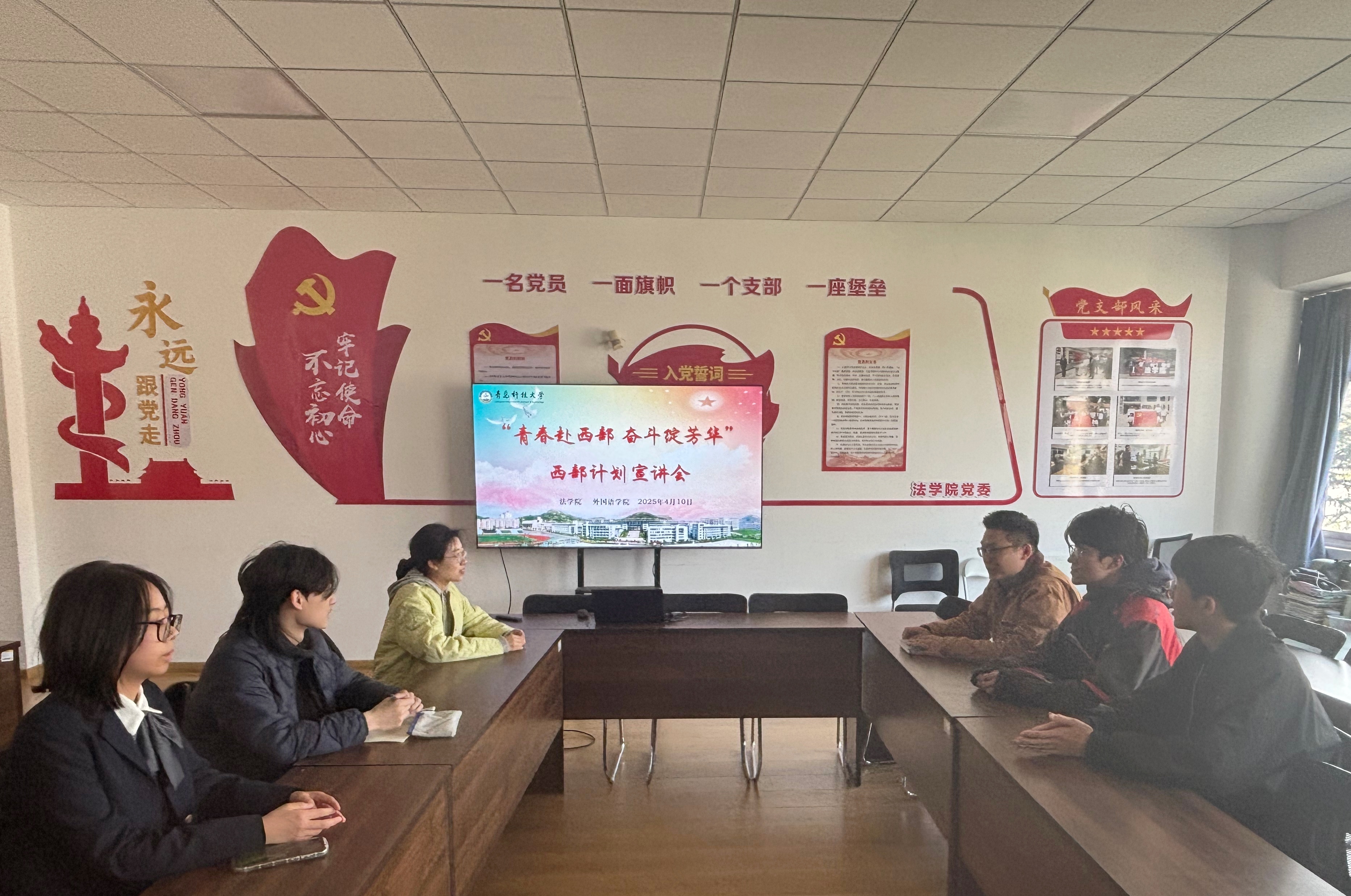 为引导青年学生深入了解西部计划,激发青年学生投身西部建设的热情,4月10日,beat365中文唯一官网与法学院联合举办“青春赴西部,奋斗绽芳华”西部计划宣讲会。