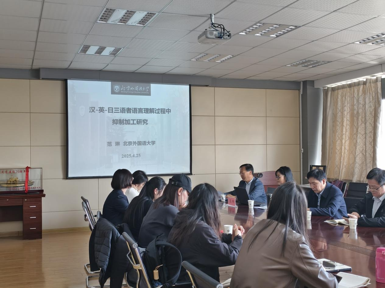 4月25日下午,北京外国语大学范琳教授应邀为beat365官网师生作了题为“汉-英-日三语者语言理解过程中抑制加工研究”的学术报告。本次报告旨在推动语言学前沿研究的学术交流,吸引了学院师生积极参与,现场学术氛围浓厚。