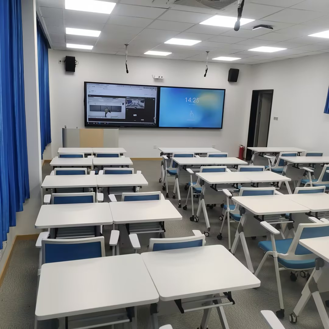 该项目于2025年7月完成全部招标流程并同时开始施工,8月底圆满完成建设工作,新学期伊始便顺利进入试运行阶段。在为期一个多月的试运行期间,智慧教室承担了授课、讲座、会议等任务,接受了全面的测试。语言视听中心组织了多轮专题培训,确保学院教师们能够熟练运用新设备。2025年10月17日,由网信办、学院组成的验收小组对项目进行了现场评审,一致认为该项目功能完备、运行稳定,达到了预期建设目标,同意项目通过竣工验收。2025年10月23-28日,学院、审计处及外部单位对项目进行现场审计,施工质量合格,符合预期环境建设标准要求,412、413智慧教室可正式投入使用。