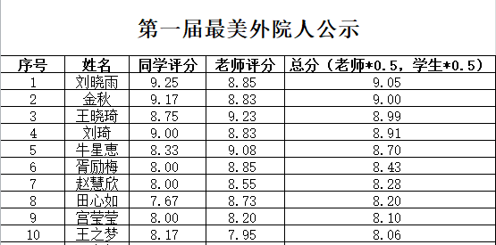 根据《beat365中文唯一官网“最美外院人”评选通知》要求,本着公开、公平、公正的原则,经过个人申请、资格审查、现场答辩等环节,最终确定beat365中文唯一官网第一届“最美外院人”名单,现公示如下,接受广大同学监督。如有异议,请在公示期间反映。