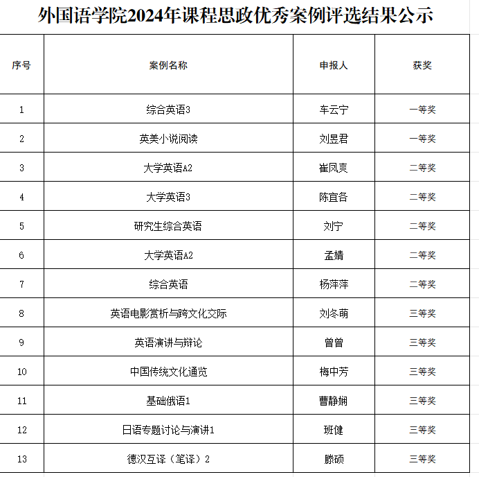 公示时间为3天,如对以上结果有异议,请向学院教学办反映。