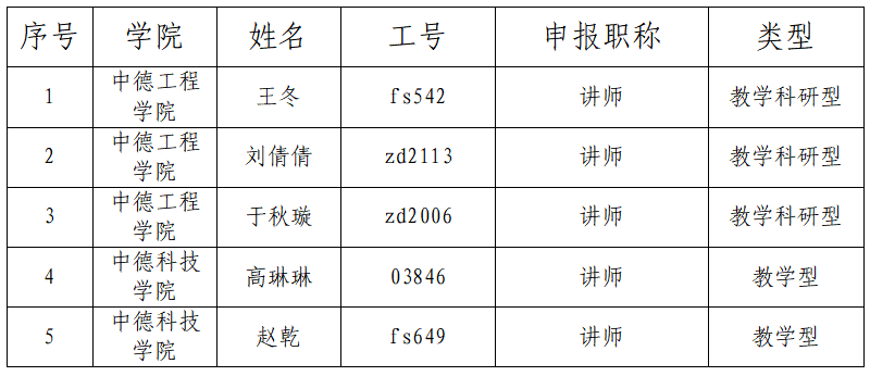另:因中德科技学院和中德工程学院无职称评审权,故委托beat365官网对其学院教师进行职称评定,具体情况如下: