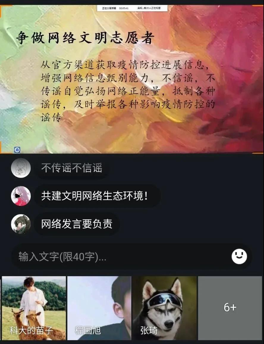 beat365中文唯一官网各个班级通过群视频的方式举办了“争做网络文明志愿者”主题教育线上活动。活动主讲人为同学们讲解了网络文明维护各个方面的知识,学习了有关网络宣传管理的有关规定,并结合本次疫情开展了“谣言粉碎机”专栏。主讲人通过辟谣的方式向同学们宣传网络文明,最后发起倡议,争做网络文明志愿者,不信谣,不传谣,自觉弘扬正能量。在此次活动中,同学们认真听讲,同时也激发了他们争做网络文明志愿者的热情,推动了班级队伍的建设,为校园文化发展贡献一份力量。