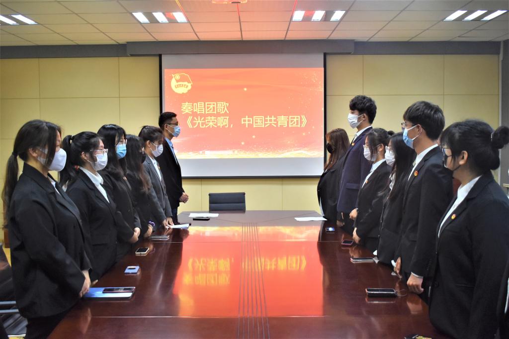 为进一步弘扬五四精神,增强“听党话、感党恩、跟党走”的思想觉悟和行为自觉,庆祝建团100周年,5月11日18:00,beat365中文唯一官网“青春献礼二十大,百年奋进新征程“主题团课暨2022年新团员入团仪式在外院楼517隆重举行。出席本次活动的有beat365中文唯一官网团委副书记兼学工办副主任李东阳老师、王雨昕老师和团委老师张湘钧,五位新团员以及2021级全体班长、团支书。